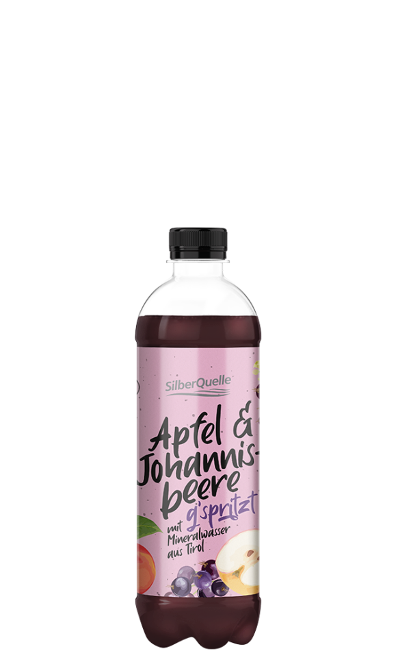 Zwei beliebte Fruchtsäfte vereint: Naturtrüber Apfelsaft und Schwarzer Johannisbeersaft. Mit prickelndem Mineralwasser schmeckt Apfel-Johannisbeere fruchtig und leicht.